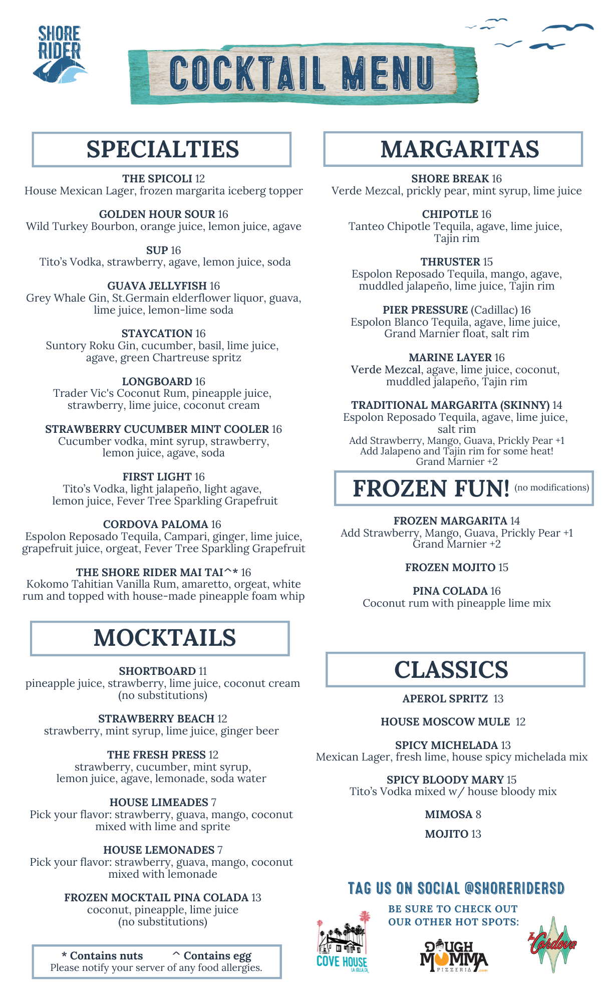 Shore Rider Food & Drink Menu